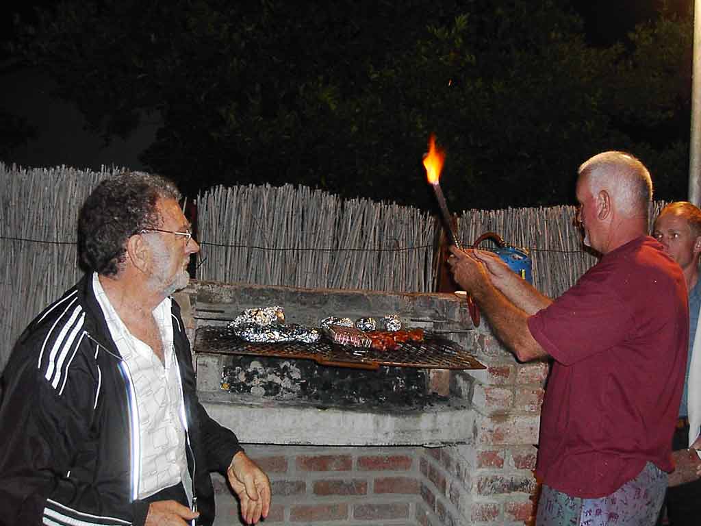 The evening required some fire experts to get the braai going properly, of course everybody is an expert: Oscar, Roger, me, Frans, but finally the job had to be handed to a woman, Maja. She managed to get our meat cooked.